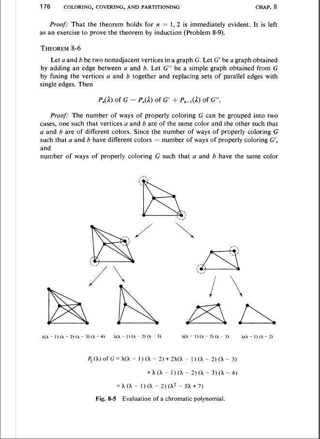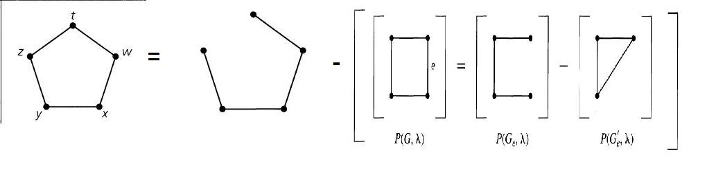 P (G, λ) = P (Ge, λ) -P(Ge', λ)其中Ge表示通过从G (Ge= G-e)中删除de边e得到的de子图,Ge‘是通过识别顶点{a,b} =e得到的子图。