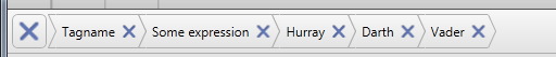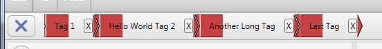 <Button DockPanel.Dock="Right" Content="X" Background="Transparent" FontSize="12" Command="{Binding RemoveTagBtn}" Grid.Column="0" Width="13.077" d:LayoutOverrides="Height" VerticalAlignment="Center" Margin="0,0,8,0"/>