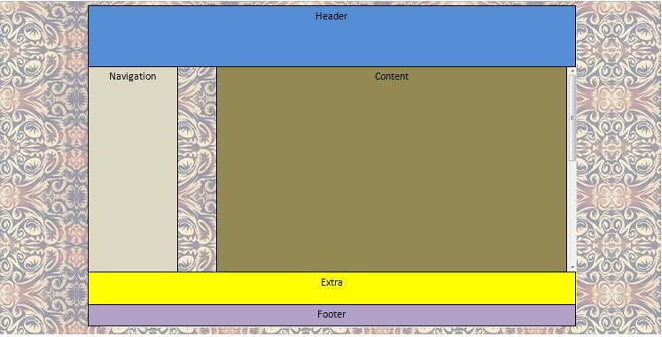 现在,我想让页眉部分始终保持相同的高度和宽度,与额外的和页脚的div一样。但我希望导航(需要重命名)和内容div自动调整,以便始终填充浏览器窗口(理想情况下,顶部和底部有10 at边框,但没有必要)。整个页面(显然不包括背景)目前保存在一个容器内。但这是一个固定的高度。这是我的CSS