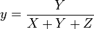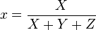 CIE XYZ颜色空间是故意设计的,因此Y参数是一种颜色亮度或亮度的度量。然后,由两个导出参数X和y指定颜色的色度,这两个参数是三个三刺激值X、Y和Z的函数,这是三个归一化值中的两个: