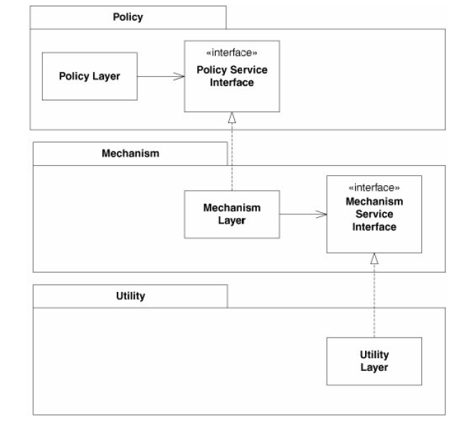 PolicyLayer使用策略服务接口(很可能它持有一个引用),MachanismLayer实现PolicyServiceInterface