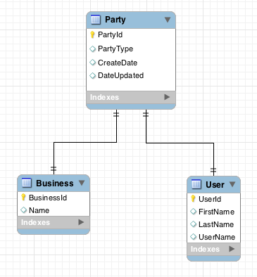 我不知道投反对票会有什么结果。没有意识到任何表格的重要性,因为这是一个一般的方法问题。但这里有一个例子。如果创建了一个缔约方,那么业务和用户如何使用该PartyId进行填充?SQL/PHP/两者都是?