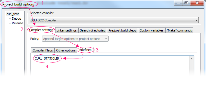 我的新构建项目设置:http://img863.imageshack.us/img863/4404/buildoptions.png我的新的全球编译器设置:http://img225.imageshack.us/img225/4926/curl2.png