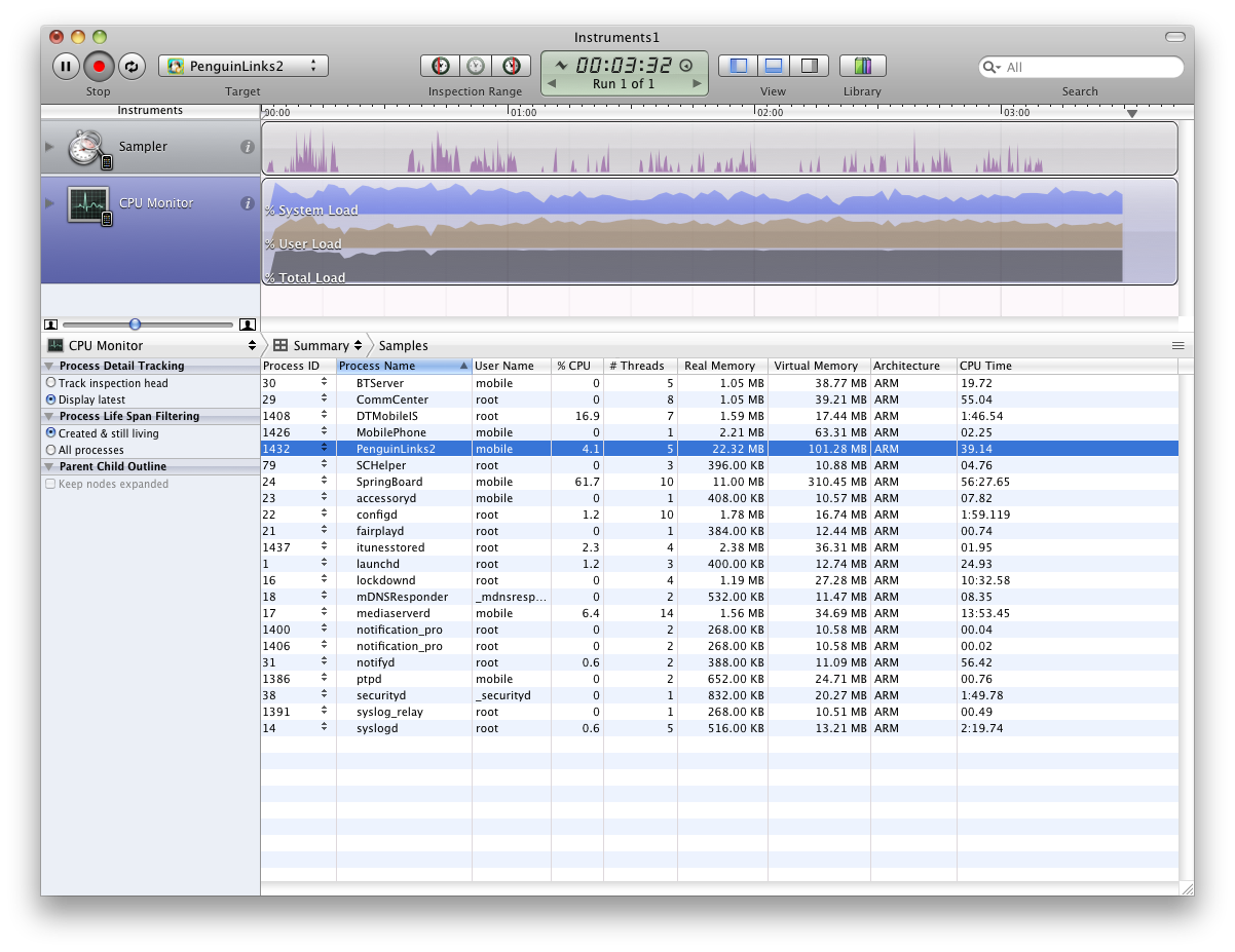 我正处于iphone游戏开发的最后阶段:优化和性能调优。我的问题是,游戏在iPhone4和iPad上运行相当顺利,但由于内存不足,它经常在iphone 2和iOS 3.1.3上崩溃。