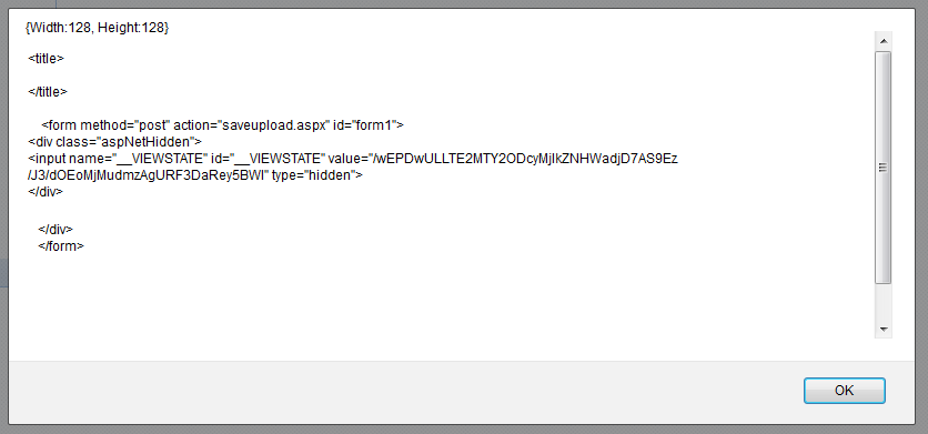 首先,我建议清除saveupload.aspx.的HTML你不需要它,它污染了你的反应。你只需要: