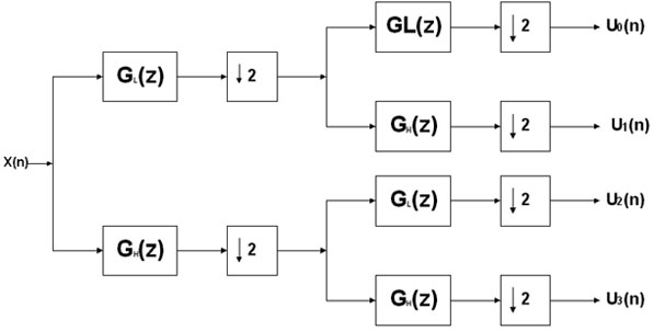 小波本质上是滤波器组。每个滤波器将给定的信号分割成两个不重叠的独立高频子带和低频子带,这样就可以通过逆变换来重建信号。当这些过滤器被持续应用时,您将得到一个过滤器树,其输出为一个输入到下一个。构建这种树的最简单、最直观的方法如下: