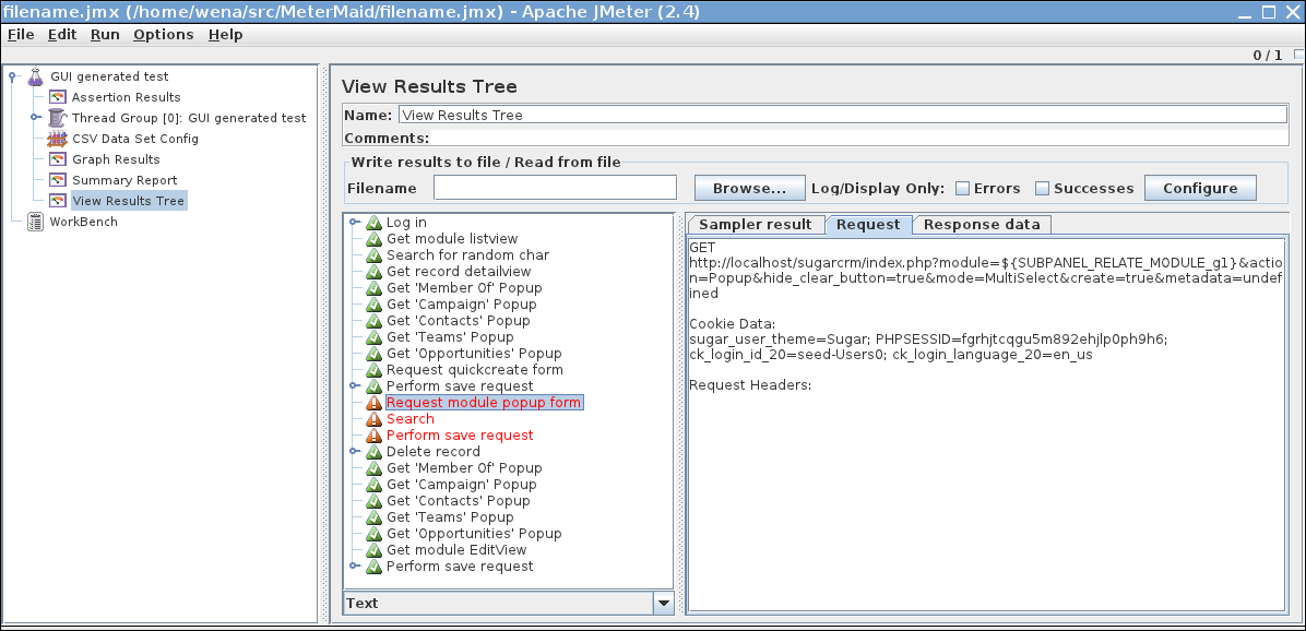 usr,pwd)。这部分确实运作良好。当我运行测试时,我可以看到大量的${}变量被转换成相应的值。可悲的是,${SUBPANEL_RELATE_MODULE_g1}没能解决.GET url (来自视图结果树侦听器组件)如下所示: