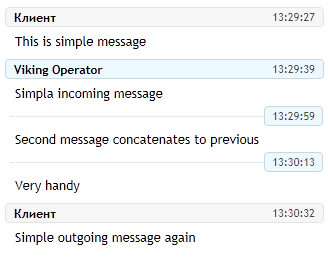 更新:这里的要点是,如果一方(在本例中是viking)在一行中发送一些消息,则接口应该将这些消息连接起来(使用瘦消息头而不是完整消息头)。因此,消息头的外观取决于先前的消息是否由同一个人发送。