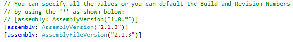 我需要你们专家的快速帮助。公司很快就会有新的SAP系统,并且有最多6字符版本号允许的限制。因此,需要将我的C#程序的发布版本风格从2.1.2.7改为2.1.3。我尝试了大量更改发布属性,但是AssemblyInfo.cs (Visual)不允许我这样做。解决办法是什么?