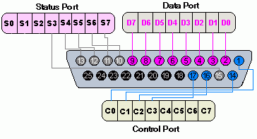 当value=0 on ParallelPort 0 volt可用在PIN-2 (此原因停止了我的设备)。