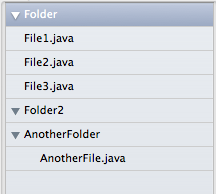 在本例中,"AnotherFolder“是"Folder2”的子级,但它不与其他缩进文件缩进。奇怪的是,"AnotherFile.java“的子"AnotherFolder”可以正确地缩进(2级)。