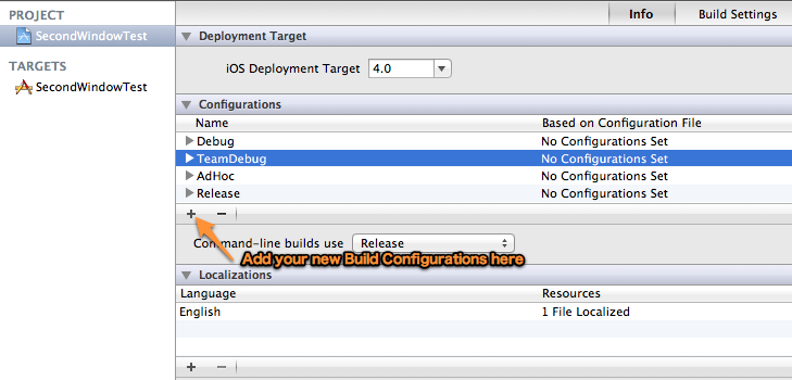 由于Xcode允许您添加不同的构建配置,因此不需要创建多个目标。只需“添加”一个新的构建配置,如"Pic1“所示,例如"TeamDebug”。编辑您的目标,为构建配置设置一个新的配置文件,或者设置任何您想设置的配置。