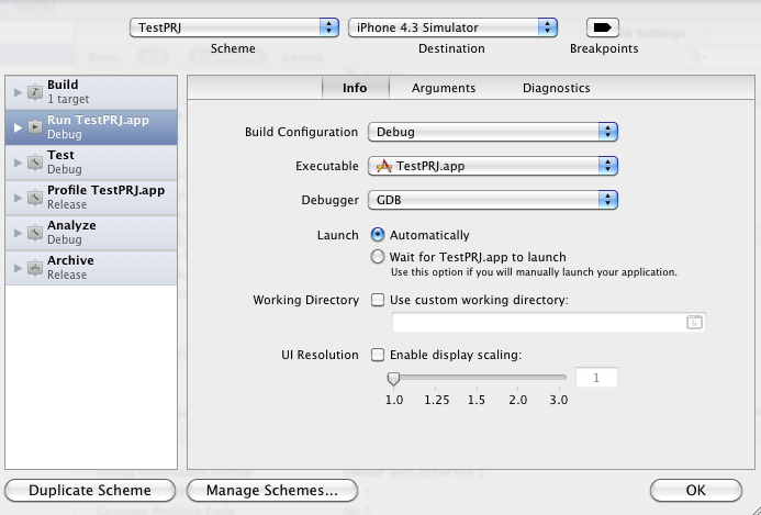 因此,当您在屏幕截图中设置时,无论是在iOS设备上还是在iOS模拟器上,当您直接“运行”应用程序时,它总是在调试。