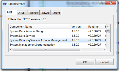 我注意到我没有看到关于System.DirectoryServices的引用--只有System.DirectoryServices.Accountmanagement