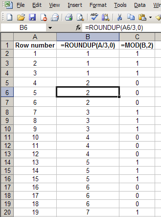 int side = ((zeroBasedRow / 3) % 2) + 1;
