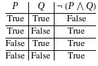 TruthTable[Not[And[#1, #2]] &, 2, {P, Q}] // TraditionalForm