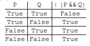 TruthTable[Not[And[#1, #2]] &, 2, {P, Q}]