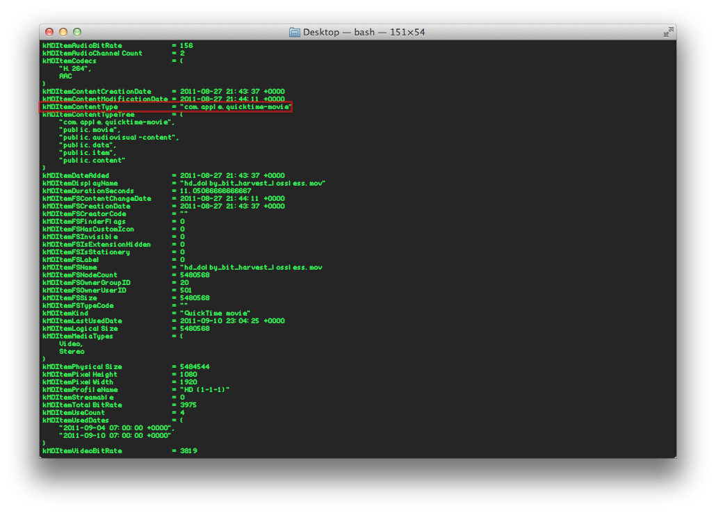 例如,在这部mdls电影中执行QuickTime很清楚地显示了它的UTI,下面是红色框。