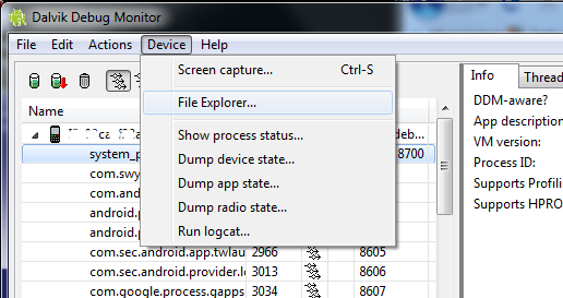 在命令行中,键入ddms.bat,然后选择(真正的)设备,然后从菜单中选择device > File: