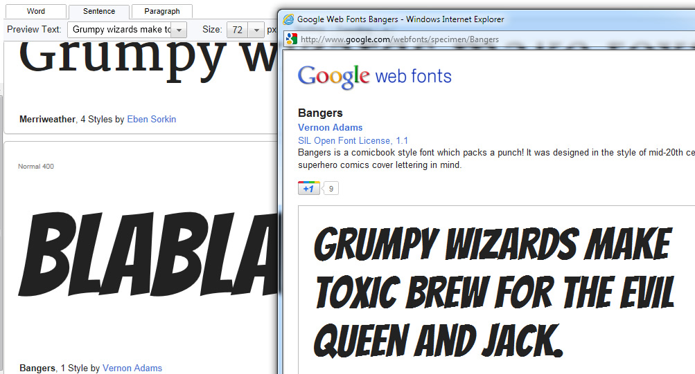 如果我打开google web字体页,字体就会显示得非常好(IE9,Windows7)。如果打开弹出查看有关字体的详细信息,就会得到字体的悲惨呈现: