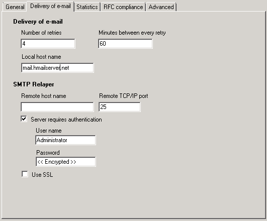 我在hMailServer管理员上添加了设置>协议> SMTP下的用户名和密码,因此我配置了以下内容。