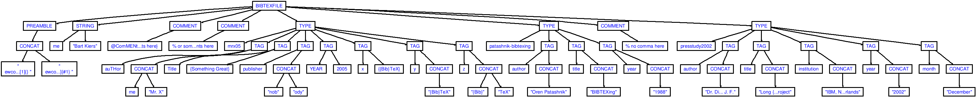 下面是一种(非常)基本的BibTex语法,它发出AST (与简单的解析树相反):