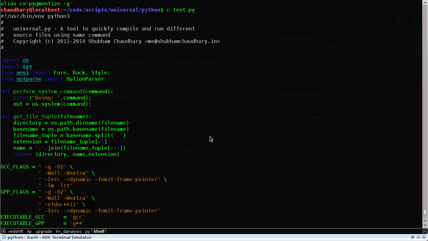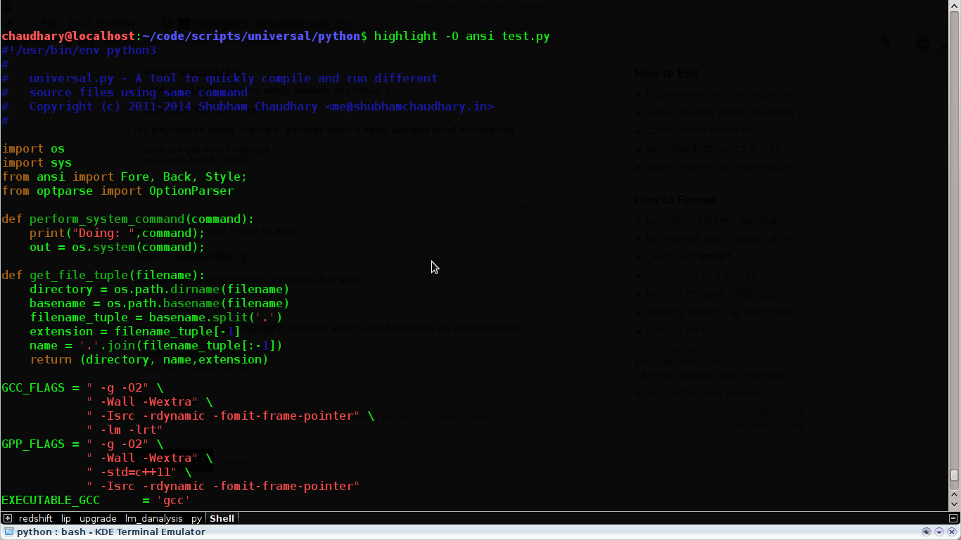我会从python包python-pygments中推荐python-pygments。您可能想要定义以下方便的别名(除非您使用了氪t包中的ccat )。