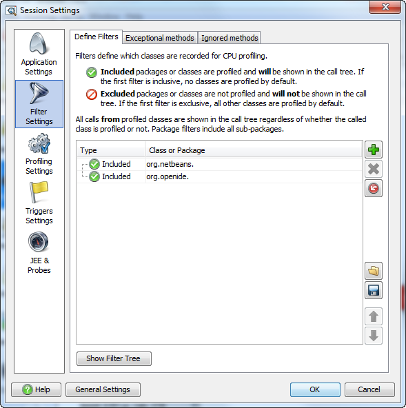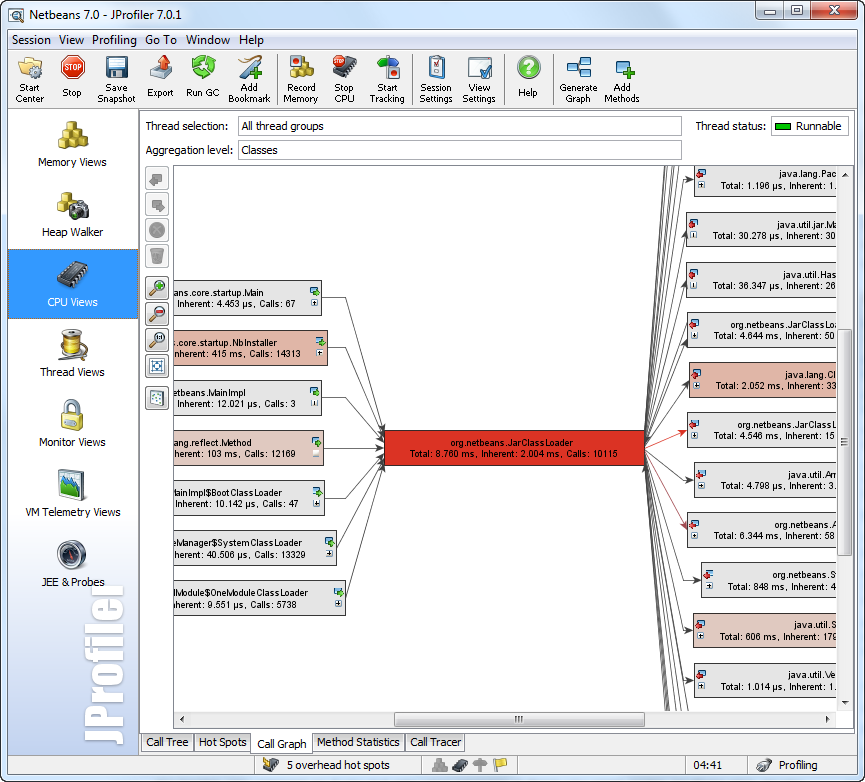 我已经很长时间没有看过你的工具包了,但是如果它的分析器不能排除包或者限制剖析包,我会很惊讶。JVM实际上附带了一个不太坏的分析器。视景包含在jdk中。请注意,分析页面上的第二个屏幕截图在底部有一个“只配置文件类”部分,因此如果您只将包放在其中,那么您将不再分析其他任何内容,或者您可以深入分析特定的包或类。