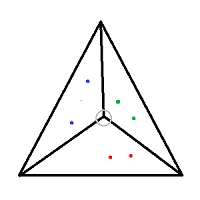 (sx,sy),使得每个子三角形都包含精确的n点。分裂点将包围三角形分割成子三角形的方法如下:从分裂点到三个顶点中的每一个都画一条线。这将把三角形分成三个亚三角形。