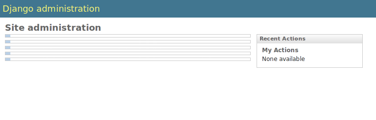 我刚刚开始部署我的第一个大型django项目。我已经设置了管理,但当我登录-一切都是空的!我以前没见过这个,所以我不知道该在哪里找这个问题。下面是截图: