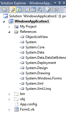 如果添加了项目源代码,则需要右键单击项目并选择Add Reference...,选择Projects选项卡,然后选择ObjectListView项目。