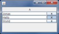我尝试实现一个包含一些字段的TableCellEditor和一个删除按钮。它运行良好,但是当删除行时,删除单元格(用TableCellEditor呈现)中的内容是而不是更新的。