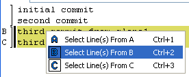 右键单击该行,从B和C中选择要合并、保存和退出的部件。