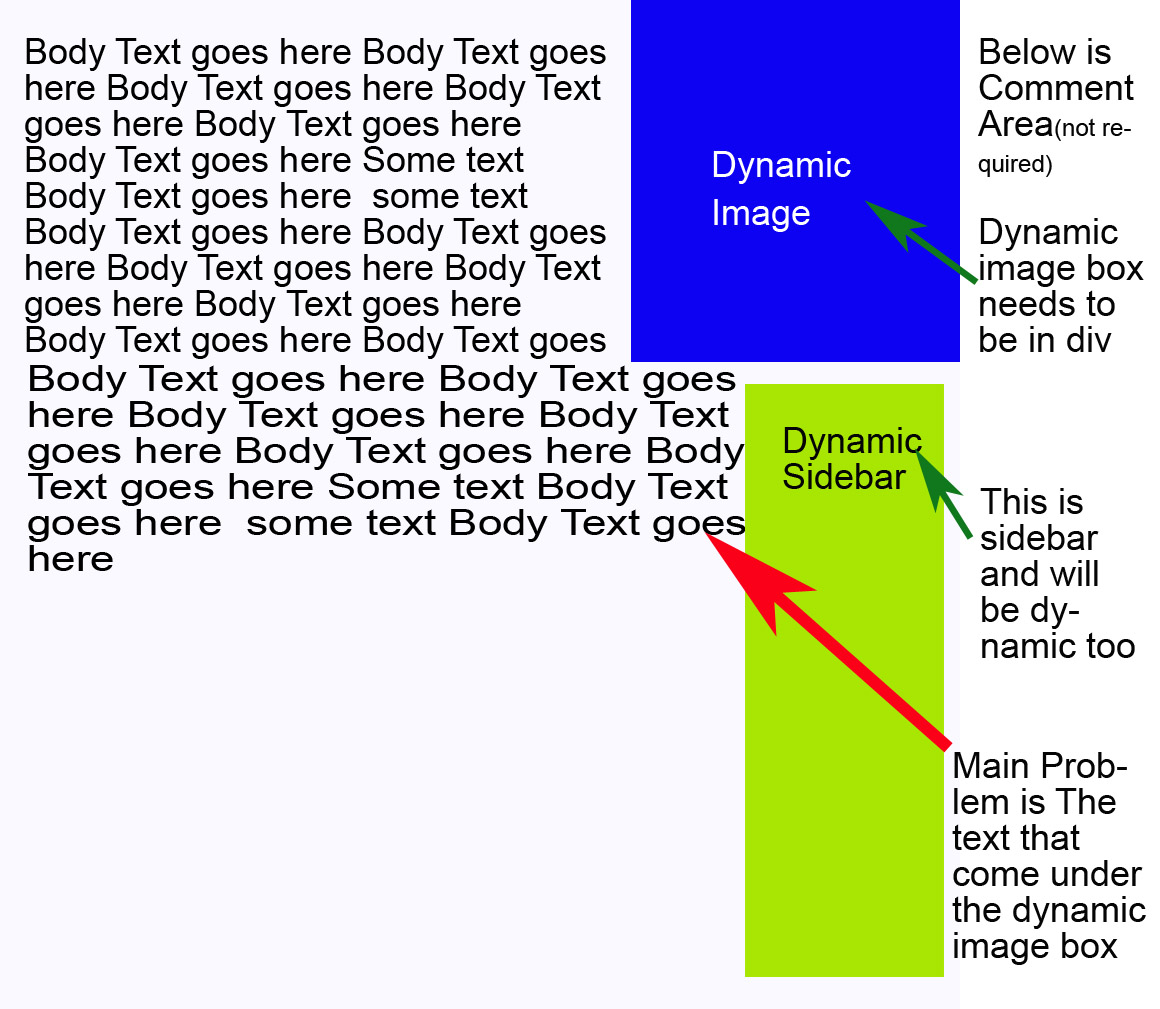 所面临的问题是文本应该位于动态图像容器下面,而动态图像容器比动态侧栏容器更宽。图像更好地解释了我的问题。任何帮助都将不胜感激。