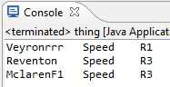 %5s将选项卡的宽度在代码的“(cars.getClasss())”和“car类”之间更改。(输出如下:)