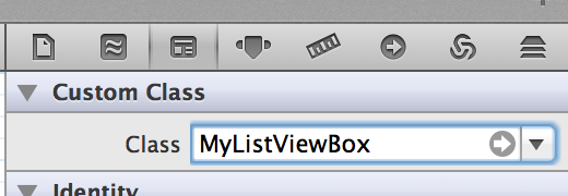 @end然后,在Interface中,将类名指定为"Custom“属性,如我的屏幕截图所示