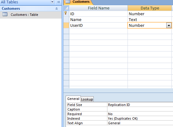我的表客户有一个字段UserID,该字段是索引的。