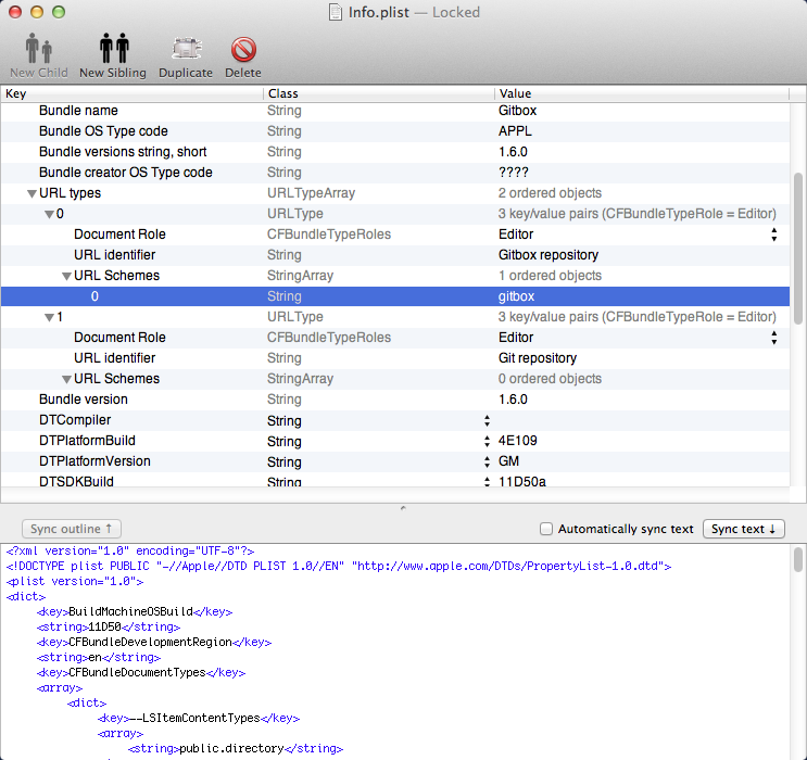 /Applications/Gitbox.app/Contents/Info.plist请注意,Gitbox的文件路径可能是关闭的,因为我实际上没有安装它,因此无法验证。还请注意,如果遇到二进制格式的.plist文件,请根据需要使用以下命令来转换它们: