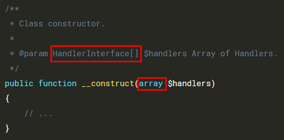 @param CustomType $variablename而且效果很好。但是,我目前正在编写的代码需要CustomType[]参数,即所述CustomType的数组。我希望文档清楚地表明需要一个数组,但当我使用