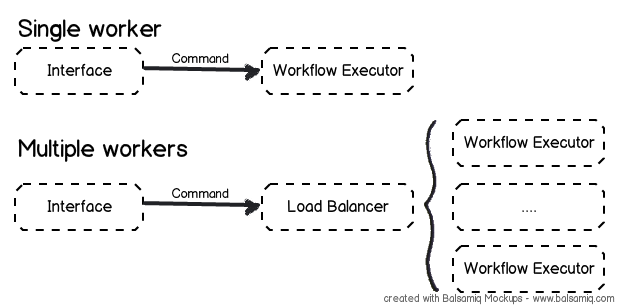 第一个问题出现在我们想要在多个工作服务上分配负载的时候。