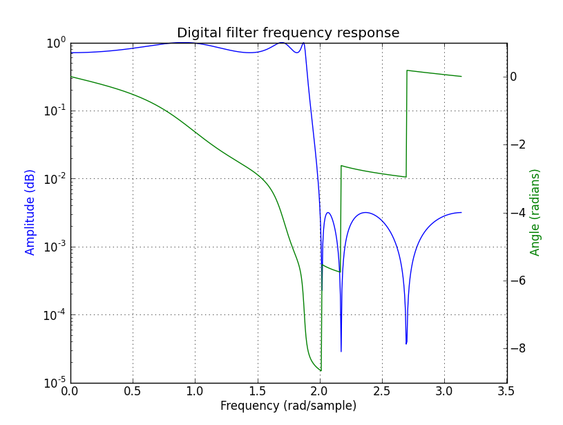 我想尝试一下SciPy在scipy.signal.filter_design.ellip中的椭圆滤波器设计功能。我熟悉Octave中的过滤器设计功能,但我不知道如何使用它: