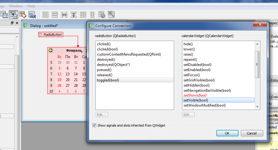 此外,您还可以将单选按钮toggled(bool)信号连接到QtDesigner中的QWidget.setVisible(bool)插槽: