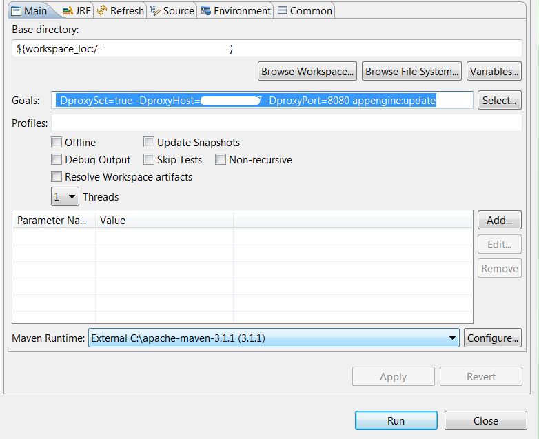 -DproxySet=true -DproxyHost=X.X.X.X -DproxyPort=8080 appengine:update我希望这能帮助其他有同样问题的人:)