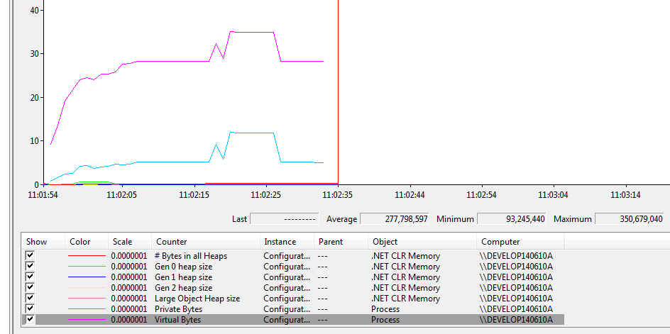 本页(地址摘要解释)是一个很大的帮助。然而,C#是我的第一语言,所以我以前没有调试内存问题的经验。想知道我是否在正确的轨道上( GC到底是个问题吗?)因为我还没有找到任何能给我任何明确指示的线索。