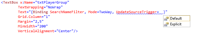 错误al crear 'System.Windows.Data.UpdateSourceTrigger‘一个partir del texto 'PropertyChanged’。线路:50个职位:12个