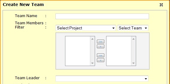 在这些模块中,我创建了一个用于创建团队的视图。其中有一个项目名称的下拉列表。以及一个列表框(ListBox-1),用于从下拉列表中显示所选项目的成员。还有另一个列表框(ListBox-2)来传输/选择其中所选的或所有记录(成员名称)。这是使用javascript完美完成的。