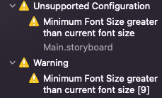 在我的应用程序中,我使用具有一组标签的自定义单元格,我看到xcode在自定义单元格xib文件中显示有关字体大小的警告: