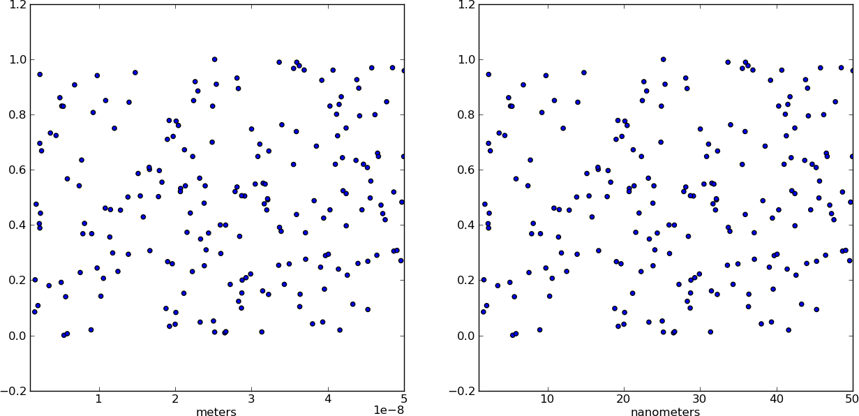 例如。如果我有一幅x标度从1nm到50 nm的曲线,x标度将从1x10^(-9)到50x10^(-9),我希望它从1变到50。因此,我希望绘图函数将放置在图上的x值除以10^(-9)。