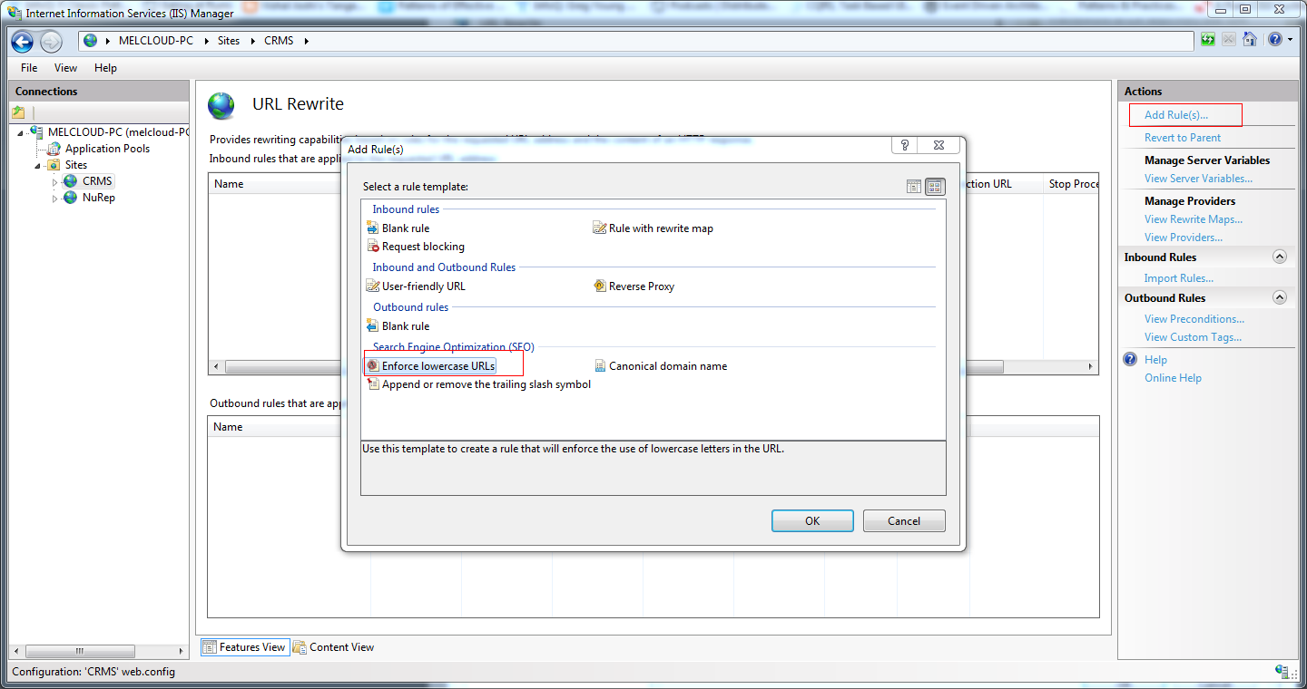 <rule name="LowerCaseRule" stopProcessing="true">
