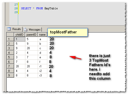 ID ParentID SomeName PLevel TopLevelFather